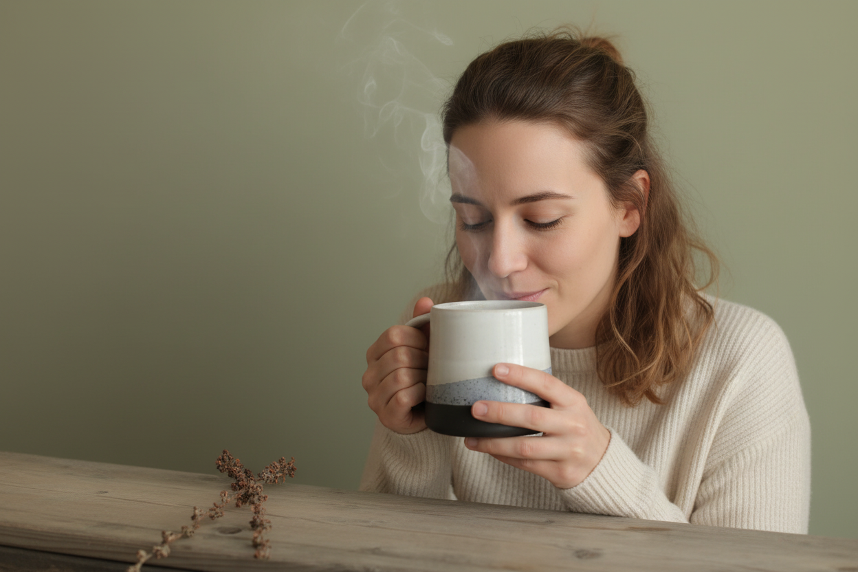 Minimalist porcelain mug with a matte exterior and glossy interior.